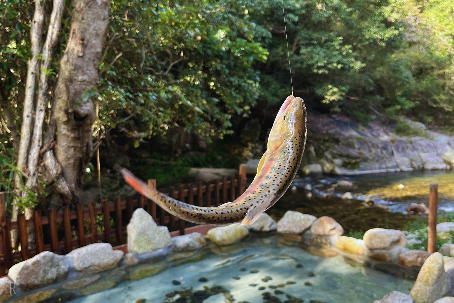 9月~6月はニジマスやヤマメ、7月~8月はアユが釣れます。